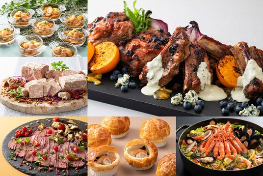 本フェアは「肉と魚介の祭典」をテーマに、シェフの趣向を凝らした多彩なメニューをご用意。1カ月ごとに「肉」と「魚介」で構成された異なる美味との出会いをお楽しみいただけます。8月は、ラム肉を使用した「ラムとオリーブのテリーヌ クミンとニンニクの香りで仕上げて」や、土・日・祝日限定で「国産牛もも肉のローストビーフ&ミニビーフステーキ」など、スタミナ満点の肉料理をご提供。9月は、トラウトサーモンや太刀魚、土・日・祝日限定で愛媛県産の鱧を使用したメニューなど魚介の上品な味わいを楽しめるメニューが登場いたします。