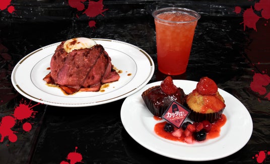 映画「カラダ探し THE LAST NIGHT」をイメージした"赤"をテーマカラーにした特別メニューを、戦慄ホラーナイト開催期間中の3日間、300食限定で販売いたします。なお、コラボフードは「戦慄ホラーナイト」の参加チケットをお求めでない方もお楽しみいただけます。