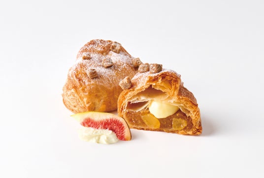 上品で奥深い味わいの「いちじく」は、ドライされたものを使用することで、より味わいが凝縮。りんごのプレザーブとともにサクサクの生地で包み込み、サワークリームを加えた爽やかなカスタードクリームをたっぷり注入しています。表面にもドライいちじくをトッピングしており、つぶつぶとした食感がアクセントです。