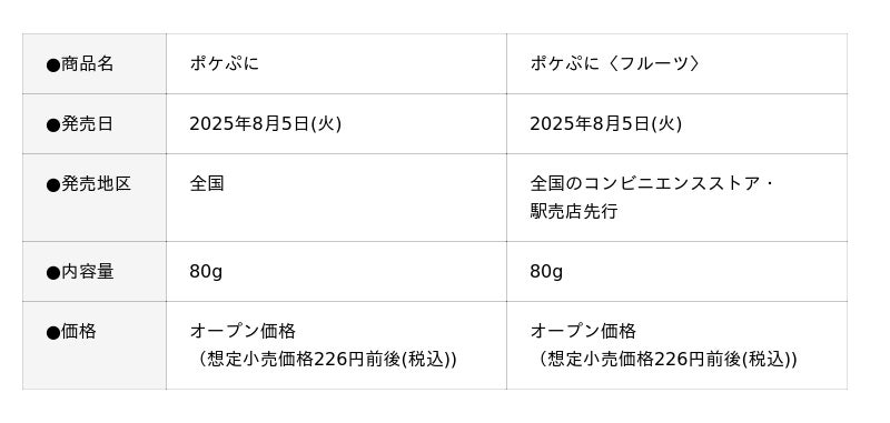 株式会社ロッテ(東京都新宿区、代表取締役社長執行役員:中島英樹、以下ロッテ)は2025年8月5日(火)に新しくなった「ポケぷに」と新商品「ポケぷに<フルーツ>」を発売します。