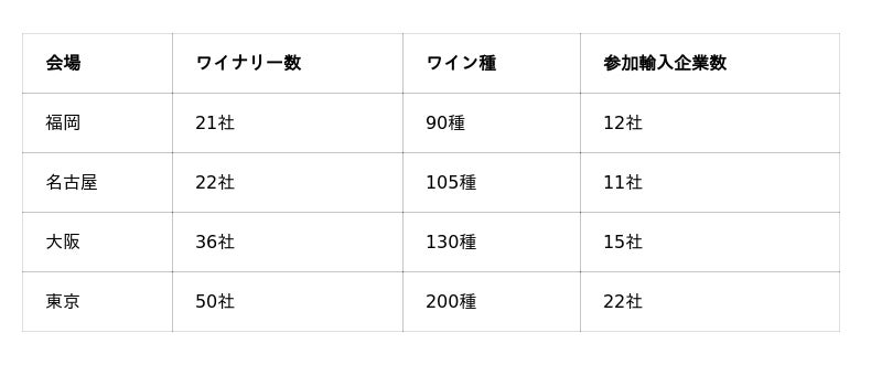 - イベント名:「2025オーストラリアワイン試飲・商談会&セミナー」- 日程と会場:2025年9月1日(月)ヒルトン福岡シーホーク 2025年9月3日(水)ヒルトン名古屋 2025年9月8日(月)ヒルトン大阪 2025年9月10日(水)アンダーズ東京