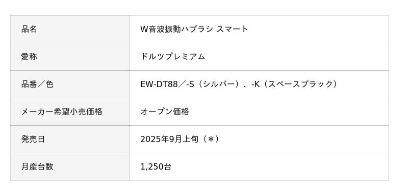 ▼[プレスリリース]「ドルツプレミアム」W音波振動ハブラシ スマート EW-DT88を発売(2025年7月30日)