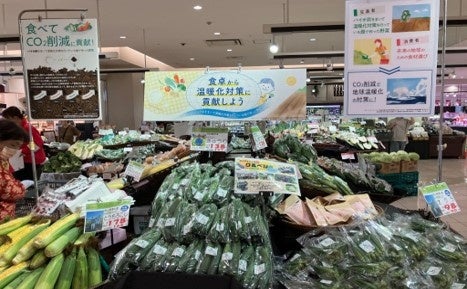 今回の販売実証では、バイオ炭を施用する農地で育った14品目の夏野菜を店頭で販売し、生産者からの商品説明や購入者への意識調査を実施することにより、環境に配慮した食品選びが脱炭素社会の実現に向けた一歩となることを訴求しました。