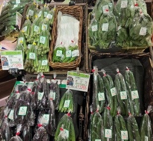 7月25日(金)、7月26日(土)の2日間にわたり、京阪百貨店すみのどう店(大阪府大東市赤井1-4-1)で販売を実施。売り場では、トウモロコシ、オクラ、キュウリなどの14品目の野菜が販売されました。