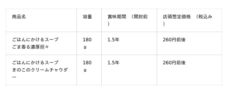 - 「ごはんにかけるスープ」シリーズのラインナップ