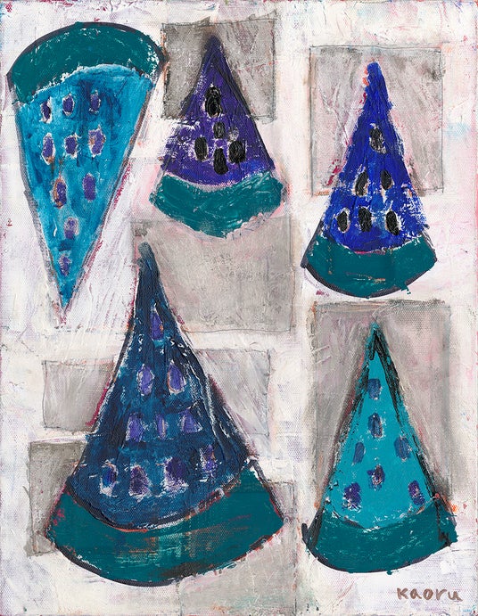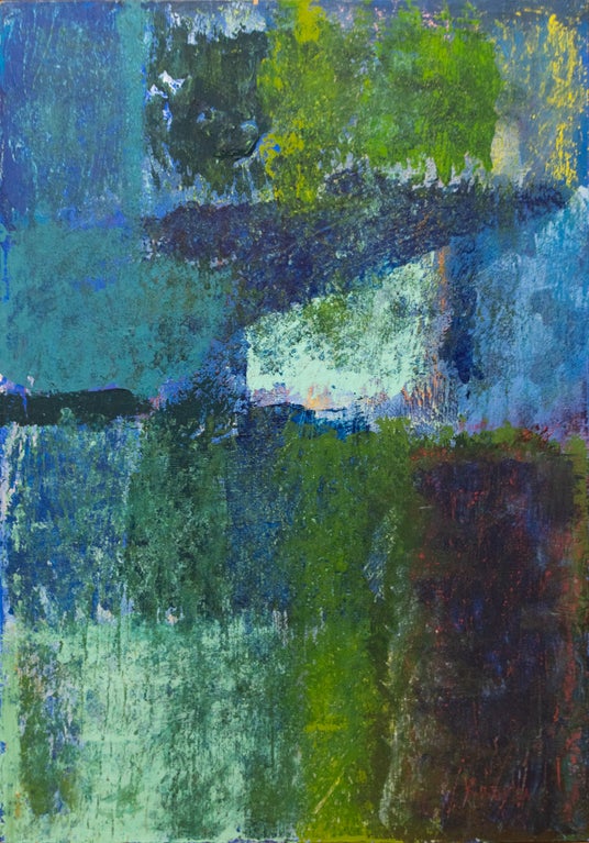 伊賀 敢男留(いが・かおる)は、2015年より本格的に作品発表を開始。絵の具、パステル、色鉛筆など多彩な画材を自由に操り、削ったり重ねたり、指でなぞるように描いた画面は、まるで音楽のようにリズムと余韻をもって観る者に語りかけます。時に自作を素材としたコラージュなども手がけ、表現の領域を拡張してきました。