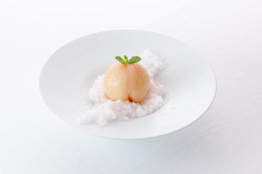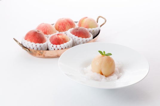 旬を迎える白桃を丸ごと一玉使った、涼やかで贅沢な一品。