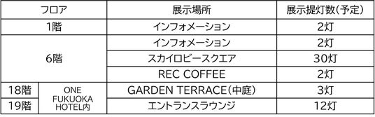 ワンビルでは、開発コンセプト「創造交差点」の体現の一つとしてワンビルの随所に国内外のアーティストが手掛ける作品を取り入れています。今回、ワンビル内の常設アートと、福岡の伝統工芸品である八女提灯とのコラボレーションにより、今夏限定の世界観をお楽しみいただけます。