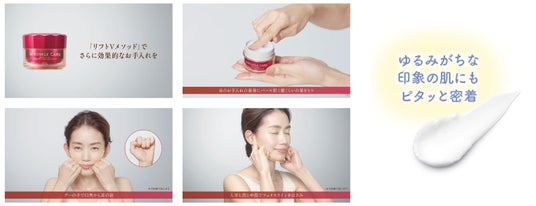 とろけるような感触の伸びの良いクリームで、ゆるみがちな印象の肌にもピタッと密着。さらに独自のリフトVマッサージメソッドで肌を引き上げるようにマッサージしていただくことで、ピンとしたハリを体感することができ、毎日のスキンケアをより充実したものに変えていきます。