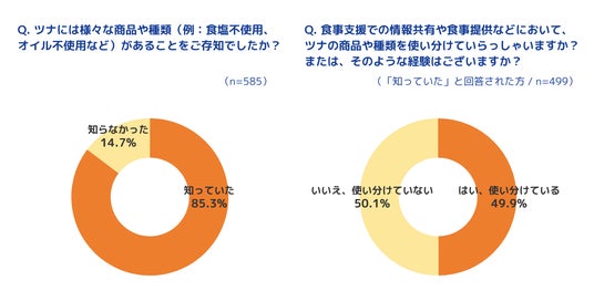 85%の医療従事者がツナの多様性を認知しており、そのうち50%が使い分けの経験があると回答。