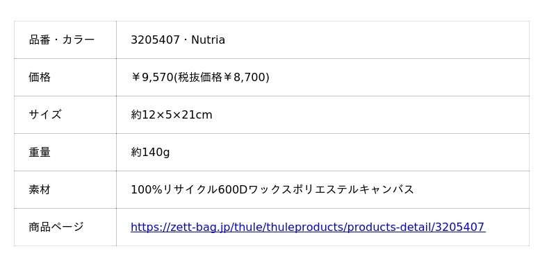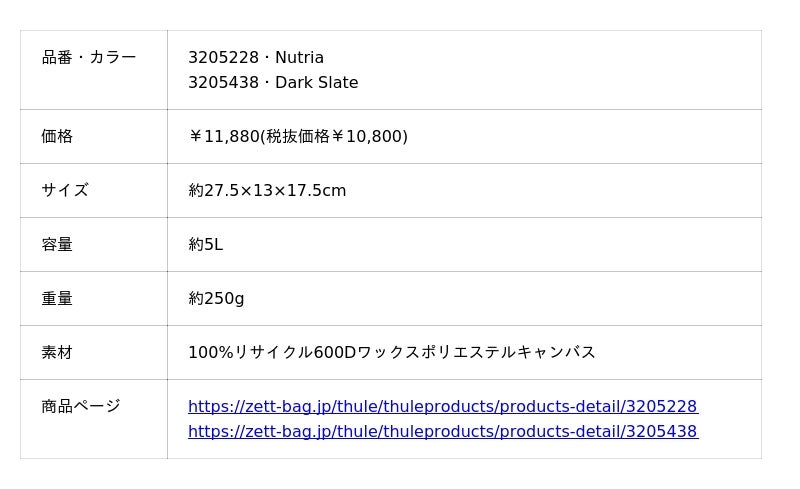 1942年に設立されたTHULEは「Bring your life」をモットーに、アクティブな人々が、安全、簡単、スタイリッシュに大切な物を運ぶ為のプレミアムな製品を幅広く展開しています。