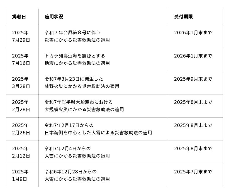 ※災害救助法適用地域の最新情報は内閣府のホームページにてご確認ください。