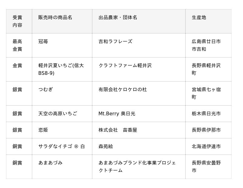 "初開催"おいしい「夏いちご」NO.1が決定!日本一は、広島県廿日市市吉和『冠苺』吉和ラフレーズに決定!