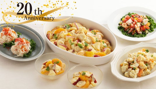 ケンコーマヨネーズ株式会社(所在地:東京都杉並区、代表取締役社長:島本 国一)の100%子会社であるサラダカフェ株式会社(所在地:大阪府吹田市、代表取締役社長:石井 健夫、以下「サラダカフェ」)は、百貨店やショッピングモールを中心にサラダショップを展開しています。このたび、8月1日(金)に創業20周年を迎えることを記念し、「Thanks & Fresh! 20周年ありがとう Salad Party」と題した特別企画を実施します。期間限定で新商品を4品発売するほか、新商品を300g以上ご購入いただくと、次回ご購入時にお使いいただける、サラダが20%引きになるクーポンを全店舗でお配りいたします。
