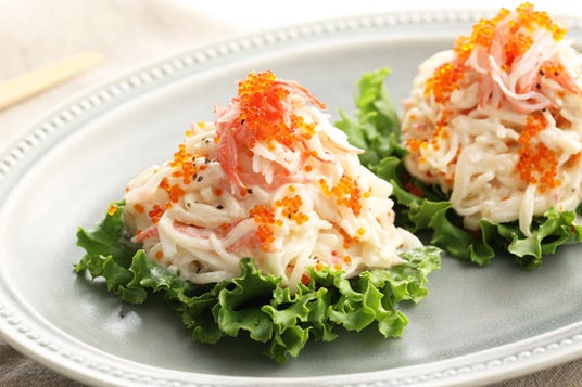 また、お祝いにぴったりの紅白カラーをイメージした『海の恵み カニ風味大根の紅白サラダ』もご用意しました。食感の異なる2種の大根を使用したサラダに、かに風味かまぼこと、とびこをトッピング。しゃきしゃきとした食感や、鰹節やナンプラーを入れたマヨネーズソースのコクのある味わいが楽しめます。