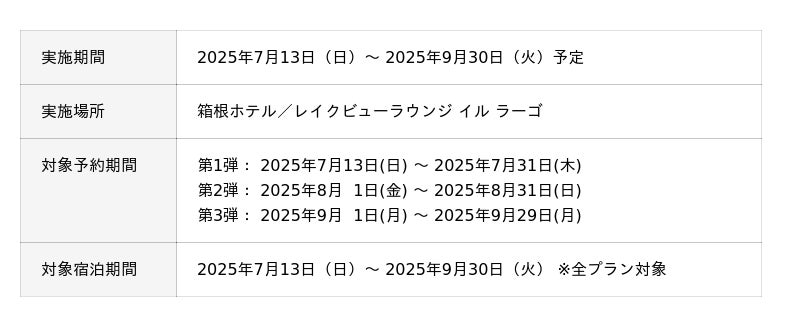 国際興業グループの富士屋ホテル株式会社(本社:神奈川県足柄下郡箱根町宮ノ下 359、代表取締役 社長:安藤 昭)では、運営する箱根ホテル(神奈川県足柄下郡箱根町箱根 65、支配人:久保田 紀和)にて、2025年7月13日(日)から9月30日(火)までの期間、夏季限定企画として「泊まってくらべて!パフェとかき氷 どっちが食べたい? 夏のスイーツキャンペーン!」を開催中です。