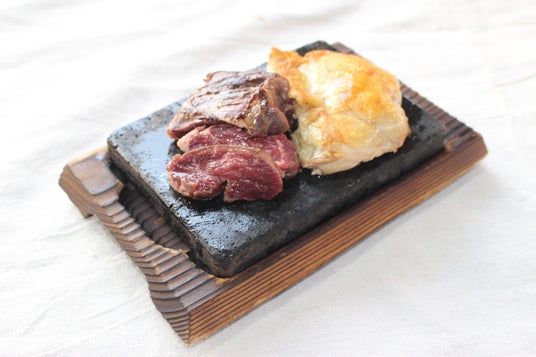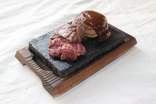 通常のステーキに加えて、上記のトッピングメニューを加えると、300g超の大迫力のセットとなります。勿論、ごはん、パン、汁物、お惣菜は食べ放題です。