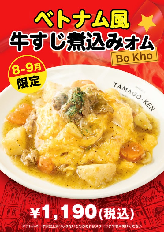 オムライス専門店の運営をしている株式会社TGK(ティージーケー、本社:東京都千代田区、代表取締役:春山佳久、https://www.tamagoken.com/)は、店舗限定の新メニューを2025年8月1日より販売を開始することをお知らせいたします。これにより、お客様にさらなる多様な味わいをお届けし、オムライスの楽しみを広げてまいります。