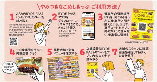二次交通のDXを推進するRYDE株式会社(本社:東京都渋谷区、代表取締役 杉崎正哉、以下「RYDE」)は、「やみつきなごめしきっぷ」をRYDEが提供するモビリティプラットフォーム「RYDE PASS」上で2025年8月1日(金)より販売開始いたします。