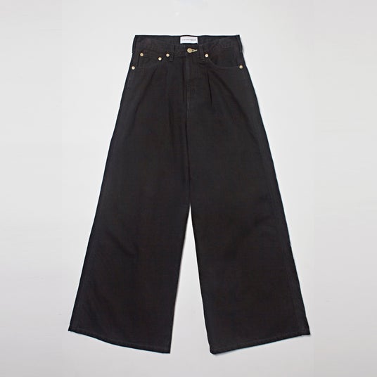 「女性の体型や感性に寄り添ったデニムを提案する」という女性デザイナーの考えから生まれたクリエイティブなデニムブランド。ワイドシルエットやフロントに施されたタックが特徴のモデル「BERYL」をブランドで展開がないブラックで別注。シンプルながらもウエストのタック部分がコーディネートにアクセントをプラスする一着です。