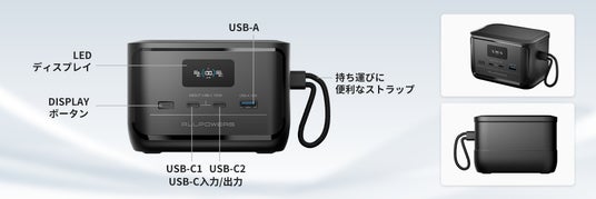 本製品は、容量99.2Wh・出力最大128Wのコンパクトポータブル電源で、飛行機機内にも持ち込み可能なサイズ・容量を実現。