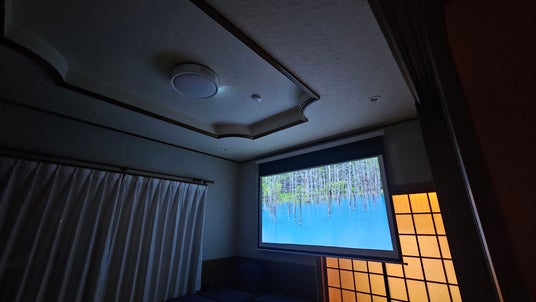 リビングルームには約100インチサイズのプロジェクターを設置しています。
