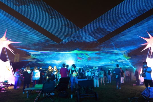 会場となる東扇島東公園は都心からのアクセスも抜群ながら、工業地帯の無機質な夜景と海辺の解放感が共存する異世界的ロケーションとしても名高い。工場群の光が夜の海面に反射し、朝陽と夕焼けが混じり合うこの幻想的な景観を背景に、国内外のクリエイターが手掛ける立体的なデコレーション、光のインスタレーション、モビール、ライブアートなどが全域に散りばめられ、来場者を巨大な芸術作品の内部へと誘う。