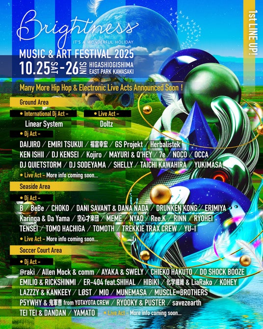 次の5年間にわたる拡張的なヴィジョンの第1章として、2025年10月25日(土)から26日(日) にかけて、神奈川県川崎市の 東扇島東公園を舞台にオールナイトで開催される。