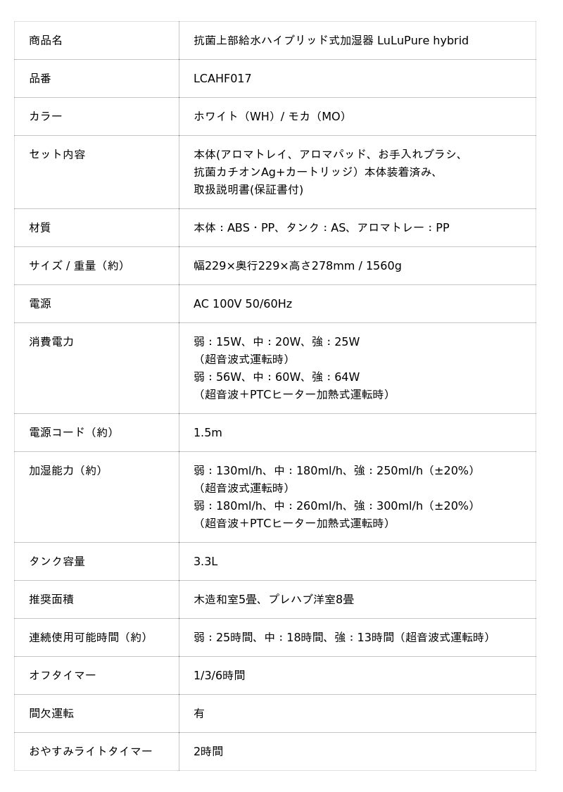 「抗菌上部給水ハイブリッド式加湿器 LuLuPure hybrid」LCAHF017