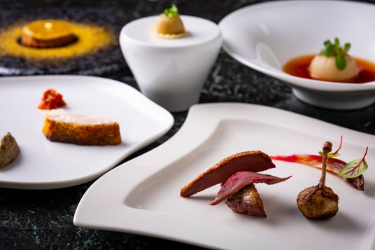 上質な空間での美食体験が叶う3つ目のエリア「Private Dining Brise Verte」。料理長の茂手木が自然の恵みからインスピレーションを受けたアミューズ・ブーシュなど、厳選した食材をそれぞれの特性に合った調理法でご提供いたします。プライベートダイニングだからこそ叶う、お客さま一人ひとりに向き合った真心のこもったサービスと料理でおもてなしいたします。