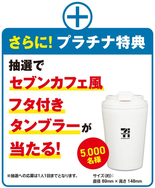 さらにプラチナランク達成でオリジナルグッズ「セブンカフェ風フタ付きタンブラー」が当たる抽選に参加できます。
