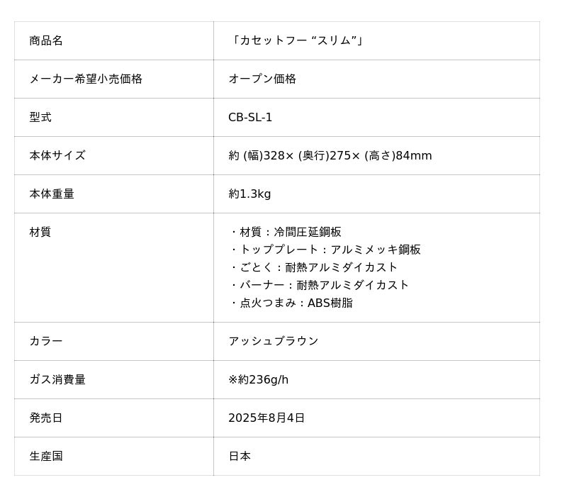 岩谷産業株式会社(本社:大阪・東京、社長:間島寬、資本金:350億円)は、「カセットフー "スリム"」を、全国のホームセンター、家電量販店、大型スーパー、専門店、当社公式オンラインショップ「イワタニアイコレクト」、当社直営ショップ「Iwatani Outdoor Shop BASE」等で、8月4日より順次発売開始します。