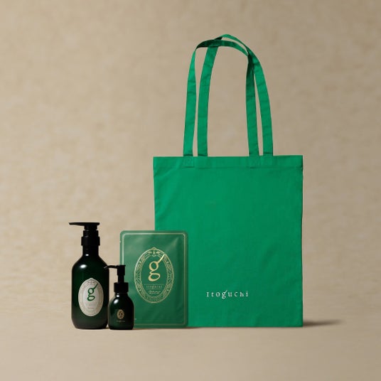 夏の肌トラブルは日焼けだけではなく、日差しからくる乾燥や肌荒れ。夏こそ肌を保湿することが大切です。Itoguchiのシグネチャーアイテムである「みどりまゆ BODY & HAIR モイストシャンプー」は効果的にシルクのうるおいを髪や肌に残せる処方。また、髪を乾かすタイミングやスタイリングする際に、シルクで髪をコーティングする「みどりまゆシルキーHAIRミルク」。1枚で化粧水・美容液・乳液・クリームの4役を担う、オールインワンかつプレミアムな1枚で、各誌でもベストコスメを受賞した「みどりまゆモイストリッチマスク」を組み合わせ、オリジナルトートバッグを付けた 特別なセットです。
