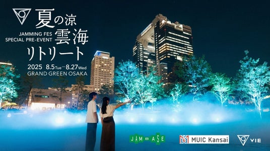 MUIC Kansaiを運営する一般社団法人関西イノベーションセンター(理事長 早乙女 実、以下 MUIC)は、JAM BASEを運営する一般社団法人コ・クリエーションジェネレーター(代表理事 高橋 豊典、以下 JAM BASE)、次世代型ウェアラブル脳波計の開発とニューロテクノロジーの社会実装を行うVIE株式会社(代表取締役 今村 泰彦、以下 VIE )と共に、グラングリーン大阪にて「JAMMING FES SPECIAL PRE-EVENT "VIE and MUIC presents 夏の涼:雲海リトリート"」(以下 本イベント)を、2025年8月5日(火)~27日(水)の期間限定で開催いたします。