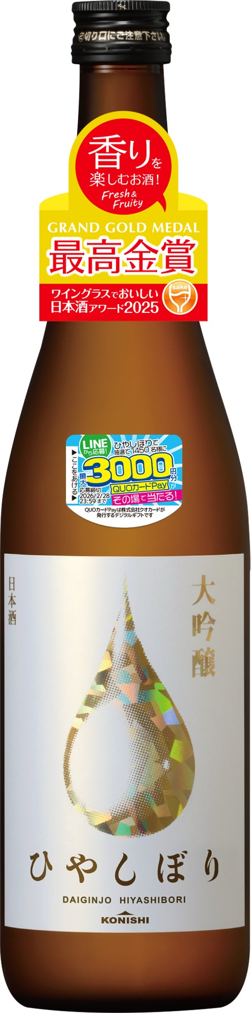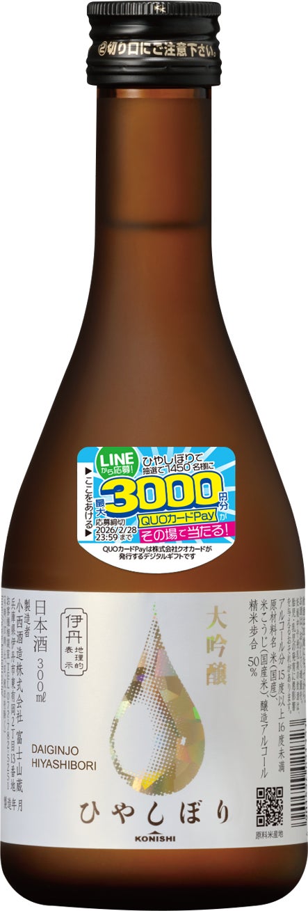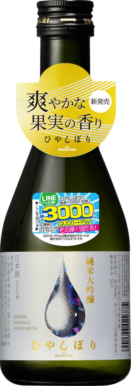 『KONISHI 純米大吟醸ひやしぼり300ML瓶詰』メーカー参考小売価格:695円(税込)