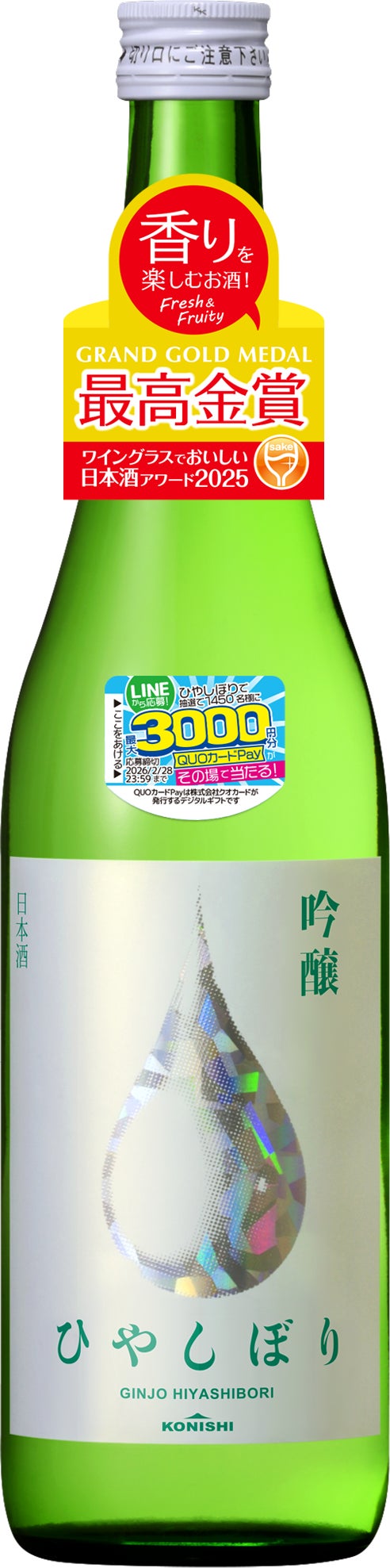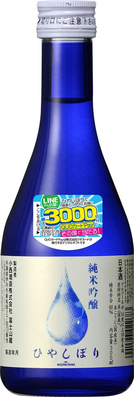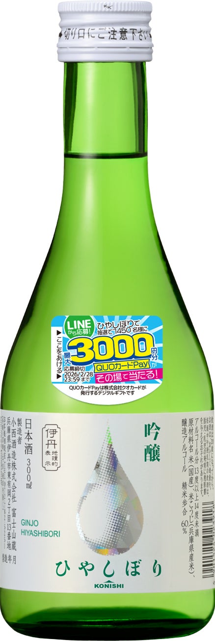 『KONISHI 純米吟醸ひやしぼり300ML瓶詰』メーカー参考小売価格:669円(税込) ※