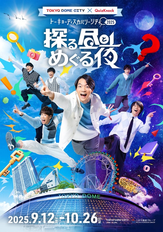 株式会社baton(東京都品川区、代表取締役 衣川洋佑)が運営するQuizKnockは、2025年9月12日(金)~10月26日(日)の期間、東京ドームシティ(文京区後楽1-3-61)にて大型イベント 「探る昼とめぐる夜」を開催します。これは毎年大きな反響をいただいている「トーキョーディスカバリーシティ!」の第3弾となります。