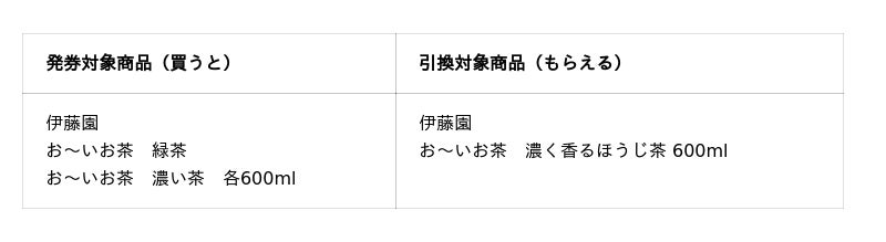 第3弾は、熱い日にぴったりなペットボトル飲料が対象です。期間中対象の「お~いお茶」をいずれか1本買うと、「お~いお茶 濃く香るほうじ茶」が翌週もう1本もらえる無料引換券が発券されます。