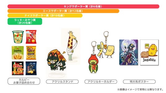 - キングサポーター賞(計6名様): 特大ポスター、アクリルスタンド、アクリルキーホルダー、お菓子詰め合わせ