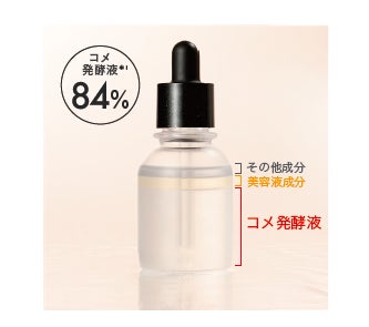 る水の部分に代わりコメ発酵液*¹を配合。処方を幾度も改良し、当社の発酵導入美容液では84