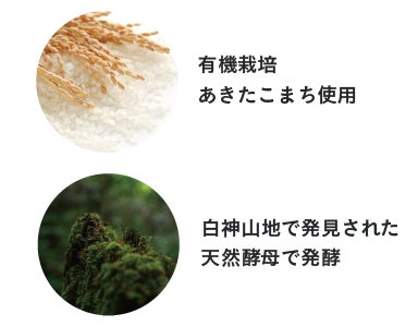 独自開発のコメ発酵液*¹独自開発のコメ発酵液*¹には、清らかな水と肥沃な大地で育まれた有機栽培米あきたこまちを使用。ビタミンやミネラルを豊富に含んだ秋田県産のお米です。