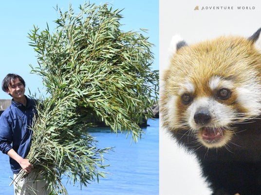 レッサーパンダが食べ残した竹を使い、アオリイカの産卵床を手づくり&海へ設置