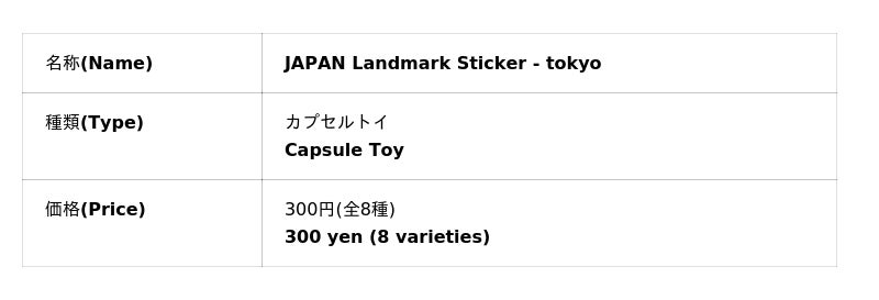 1回引くと「JAPAN TOKYO」ステッカーがおまけで付いてくる。