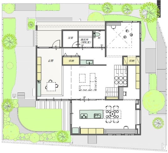 3.見守り動線:キッチンにいながら、リビングや庭を見守れる