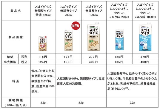 - 大豆固形分14%の濃さが特長の125mlサイズは、「無調整タイプ特濃」として発売します。