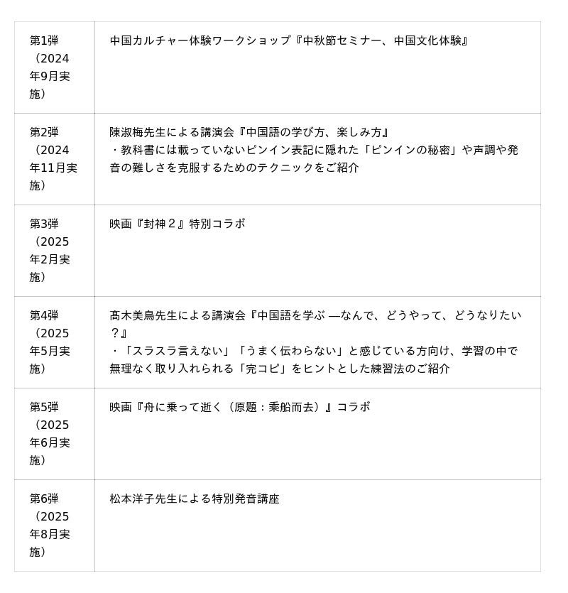 ■ハオ中国語アカデミー開校20周年記念企画 過去実施一覧