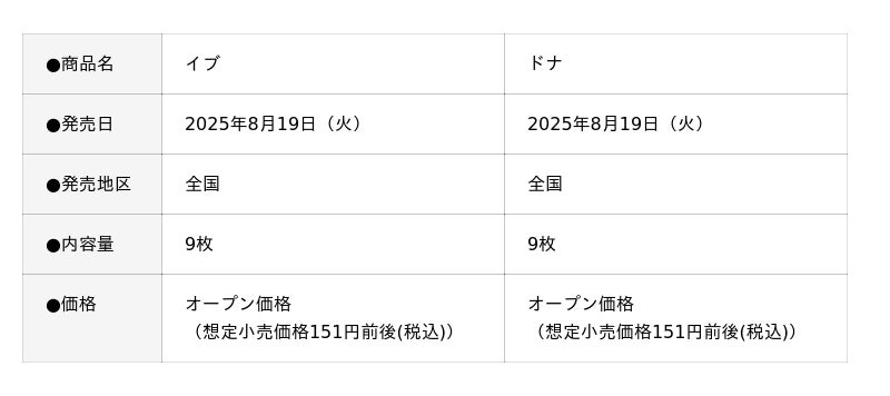株式会社ロッテ(東京都新宿区、代表取締役社長執行役員:中島英樹、以下ロッテ)は2025年8月19日(火)に人気チューインガム「イブ」と「ドナ」を発売いたします。