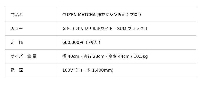 「CUZEN MATCHA(読み:くうぜんまっちゃ)」を運営する World Matcha株式会社(本社:米国カリフォルニア州サンマテオ、日本法人:東京都目黒区)は、新商品である業務用「抹茶マシンPro(プロ)」を2025年8月5日(火)正式に発売開始いたします。