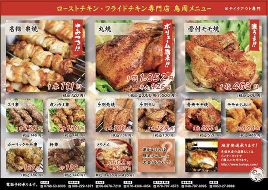串焼きを中心としたローストチキンで人気の『鳥周』が、兵庫県宝塚市鹿塩に仁川店をオープン 全国15店舗目