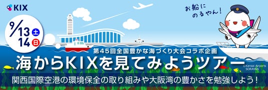 関西エアポート株式会社と大阪府漁業協同組合連合会、NPO法人大阪府海域美化安全協会は、2025年9月13日(土)と14日(日)の2日間で関西国際空港にて、「第45回全国豊かな海づくり大会コラボ企画 『海からKIXを見てみようツアー』」を開催することをお知らせします。